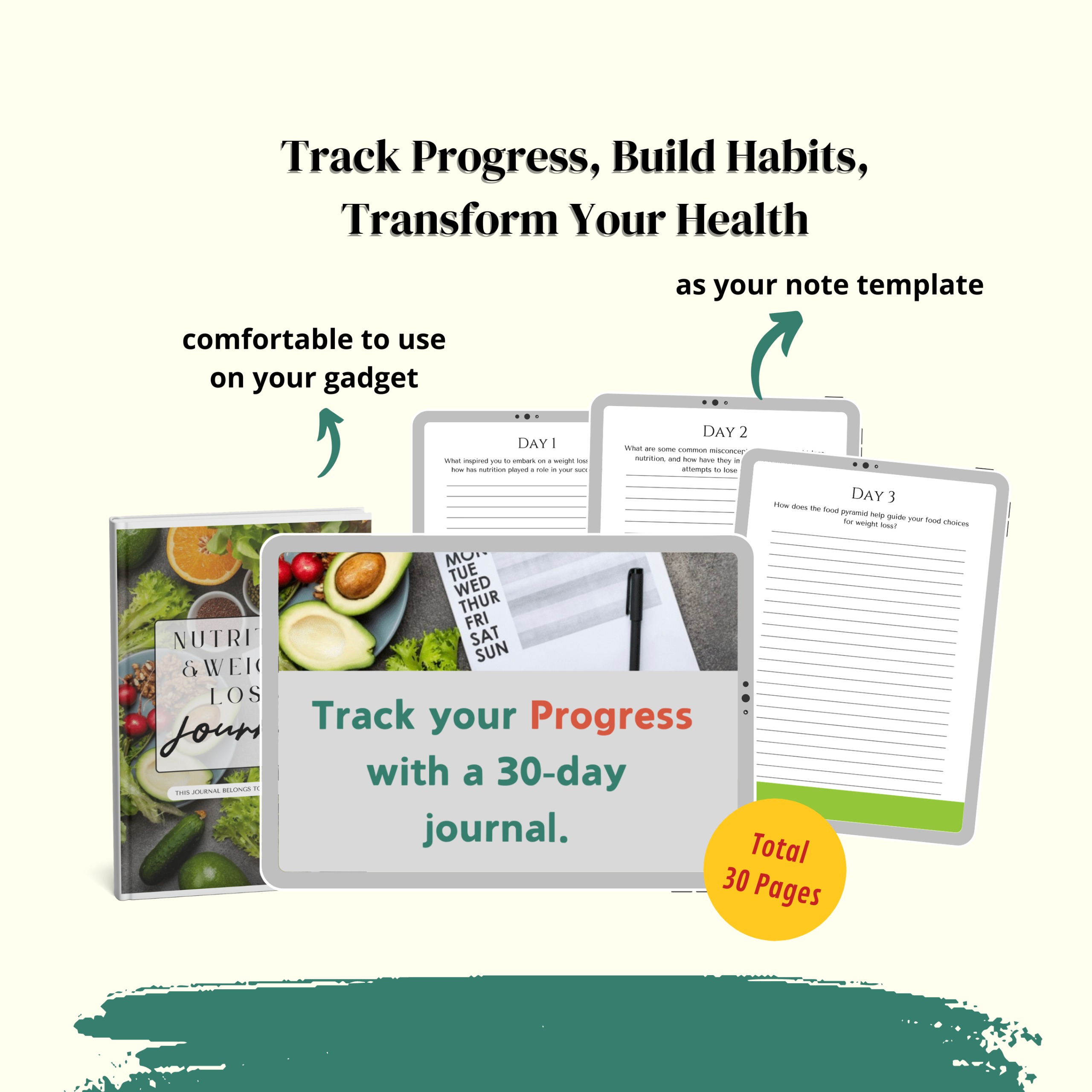 Organize your healthy living journey with a 30-day journal.